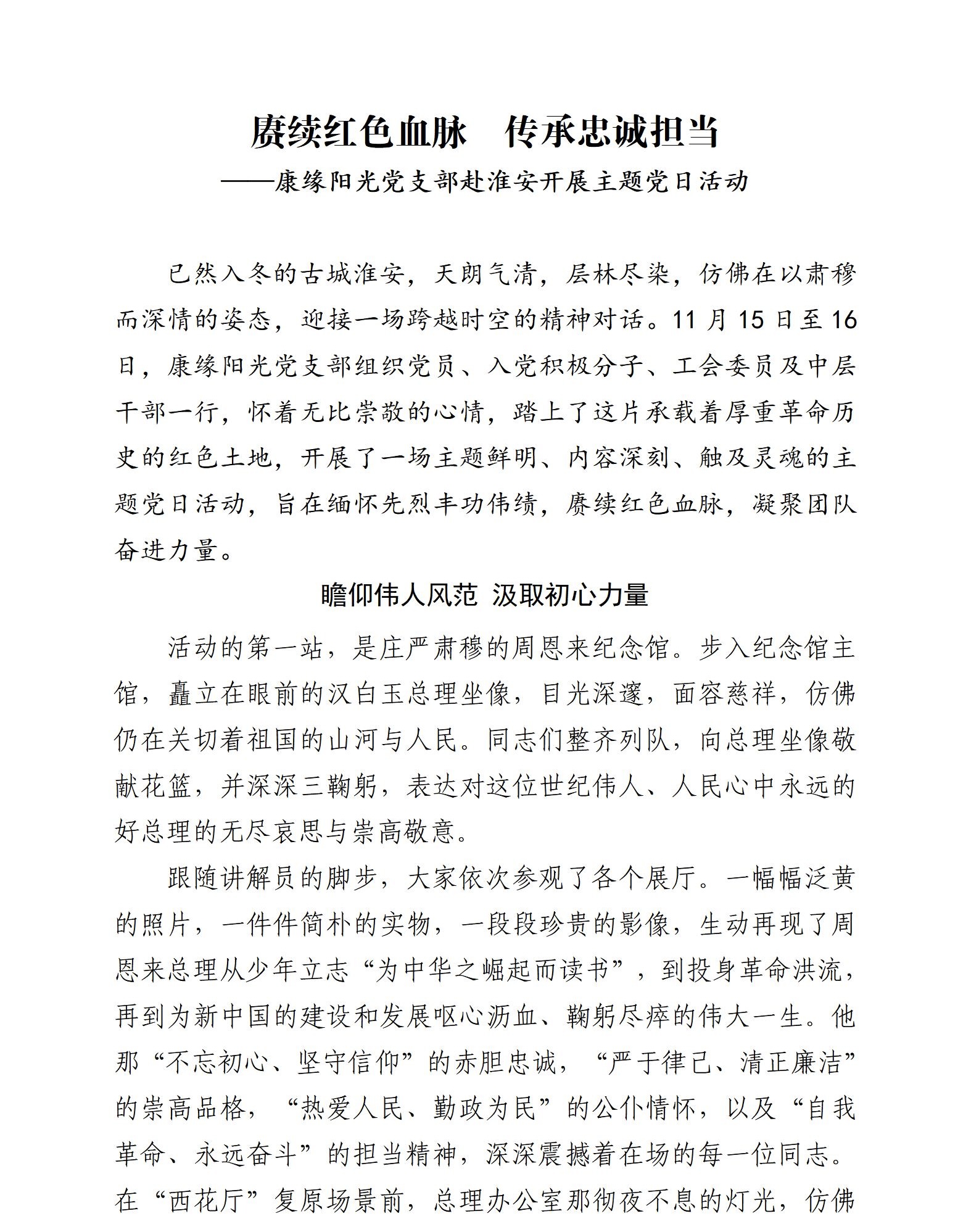 赓续红色血脉 传承忠诚担当 ——康缘阳光党支部赴淮安开展主题党日活动